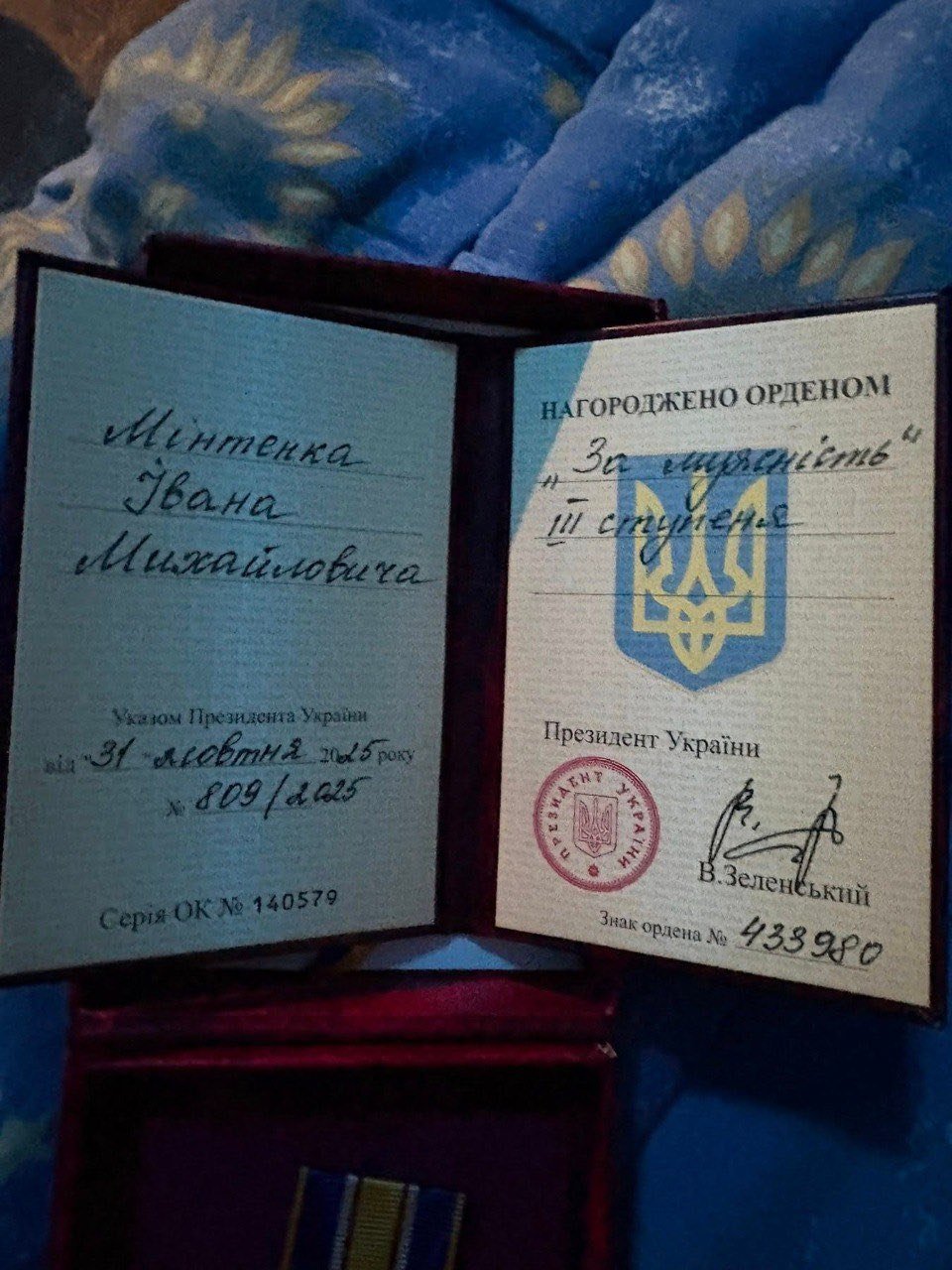 Про відзначення військовослужбовців повідомили в громадах Чернівецької області. Орденом «За мужність» ІІІ ступеня нагороджено Івана Мінтенка, мешканця села Тисовець Великокучурівської громади. Відзнаку вручають за проявлений героїзм, відвагу та самовідданість під час виконання службових обов’язків.