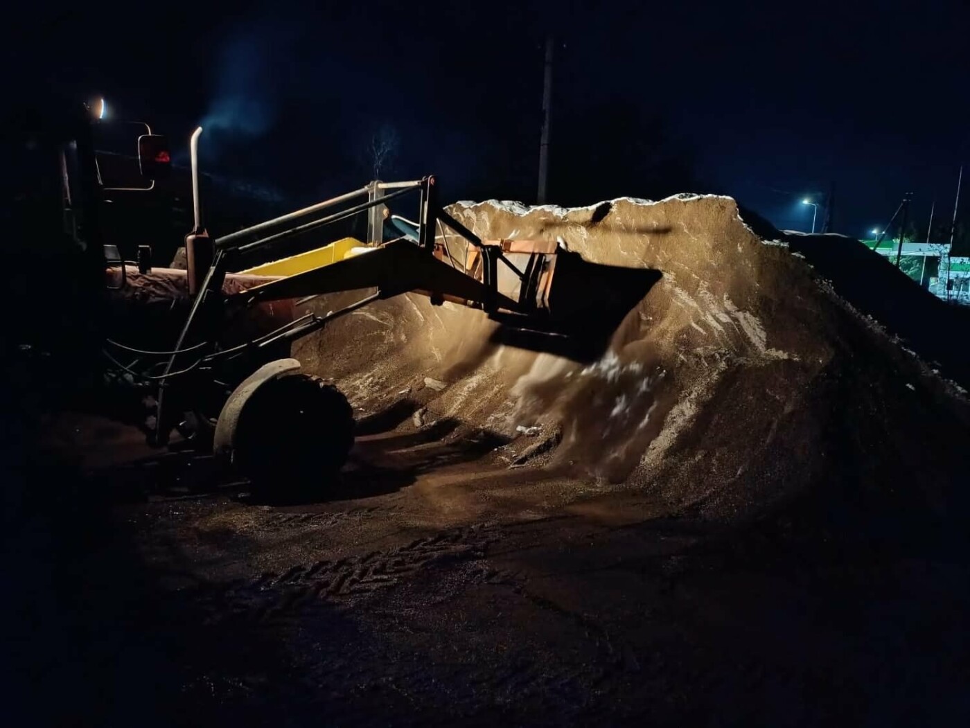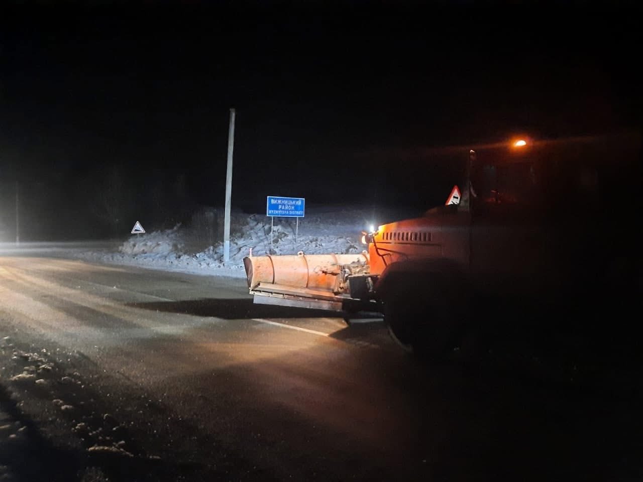 Дорожники не відпочивали всю ніч. Вони розсипали протиожеледні матеріали на дорогах та усували наслідки негоди. Зокрема, прибирали дерева, які впали на дорогу та заважали транспорту проїхати.