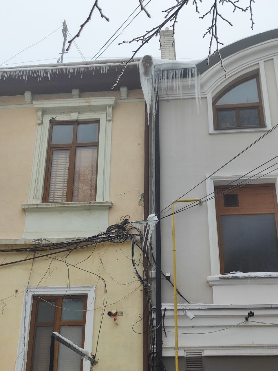 У Чернівцях на дахах будинків утворилися крижані бурульки. Будьте уважні та дотримуйтесь правил безпеки.