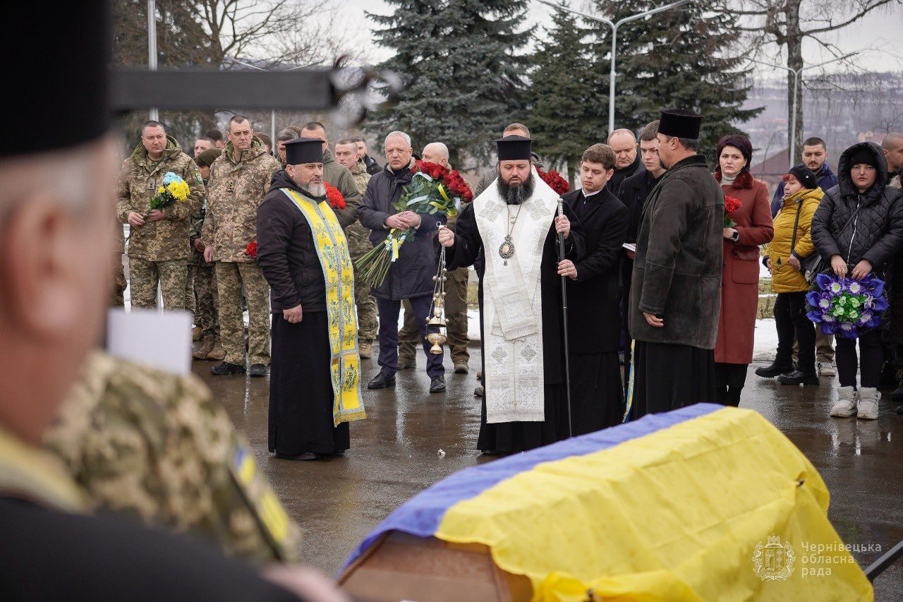 У місті Чернівці відбулося поховання семи військовослужбовців, які загинули під час захисту України. Про це повідомляють у Чернівецькій обласній раді.