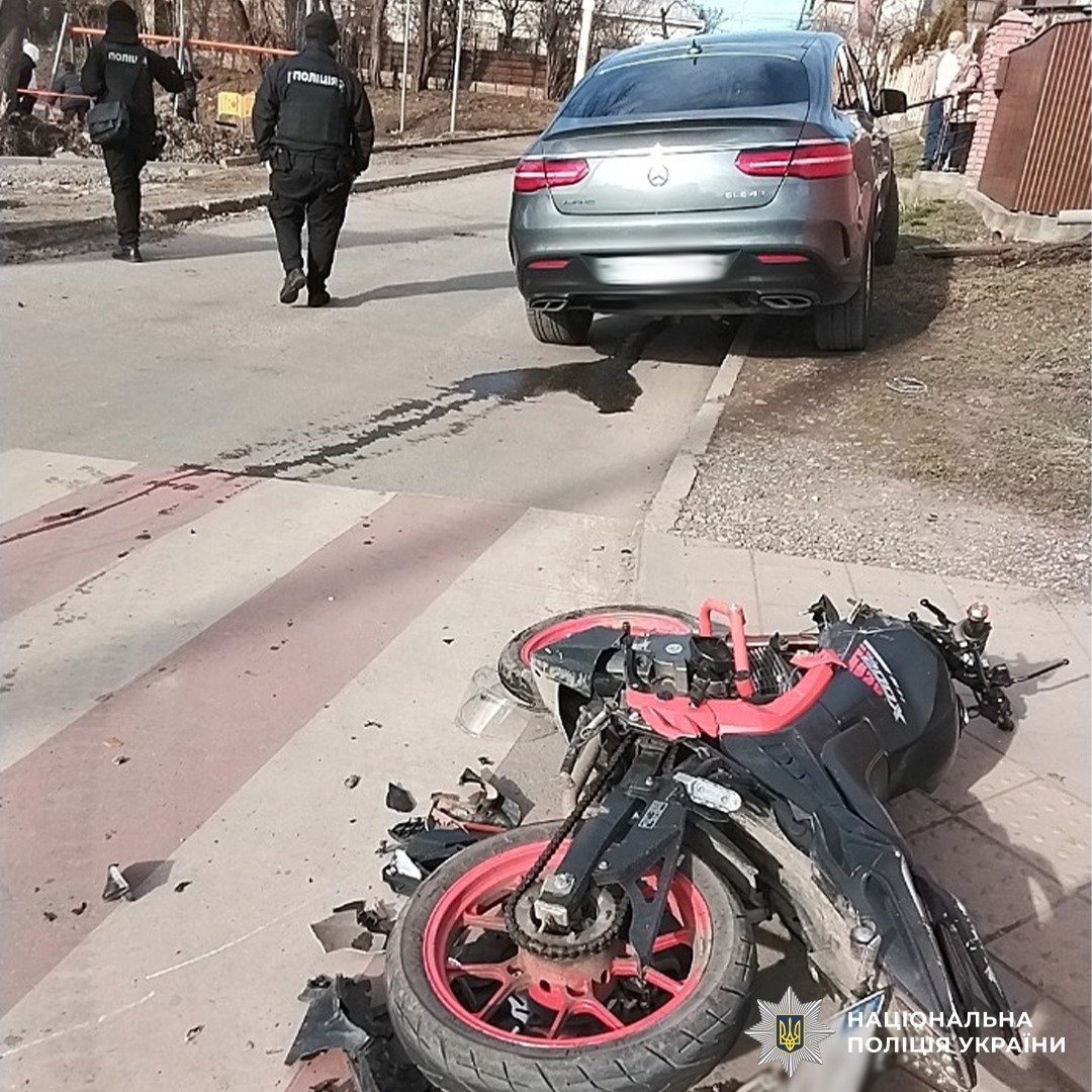 8 березня до поліції надійшло повідомлення про ДТП на вулиці Руській у Чернівцях. Попередньо правоохоронці встановили, що 60-річний місцевий житель, керуючи автомобілем «Mercedes-Benz», зіткнувся з мотоциклом «Senke Shark». Двоколісним транспортом керував 19-річний житель села Чагор Чернівецького району.