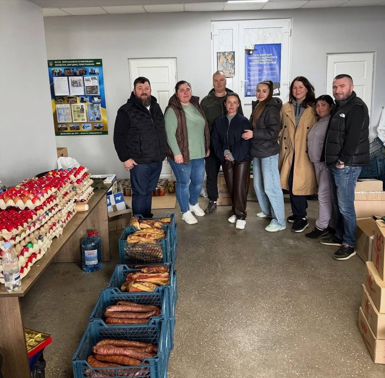Динівці передають великодні страви військовим. Місцеві господині зібрали традиційні домашні страви: оселедець, голубці, салат «Олів'є», хрін, котлети, соління, печінку, калачі та пасочки.