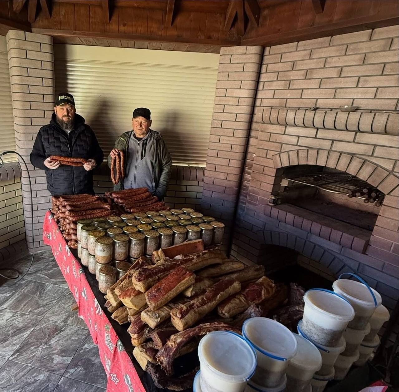 Окрему партію продуктів підготувало подружжя Валерій та Марія Бушуляки. Зі 250 кілограмів м'яса вони виготовили паштет, ковбаси, копченості та шкварки.