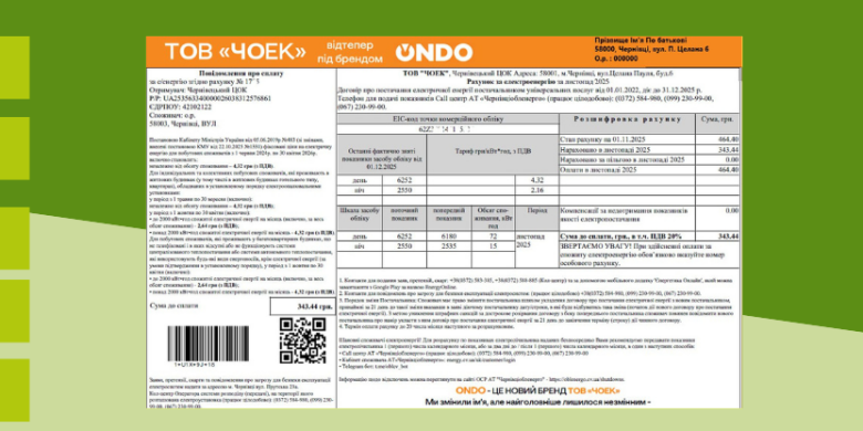 Компанія змінила назву, але залишила всі умови для споживачів без змін. З 1 грудня ТОВ "ЧОЕК" почало працювати під новим брендом, повідомляє компанія. У грудні споживачі Чернівецької області вперше отримають квитанції з оновленим логотипом. Про це журналістам видання 0372 повідомили в енергопостачальній компанії. Компанія запевняє: споживачам не потрібно хвилюватися через зміни. Оновлення торкнулося лише візуального оформлення. Команда фахівців працює в т...