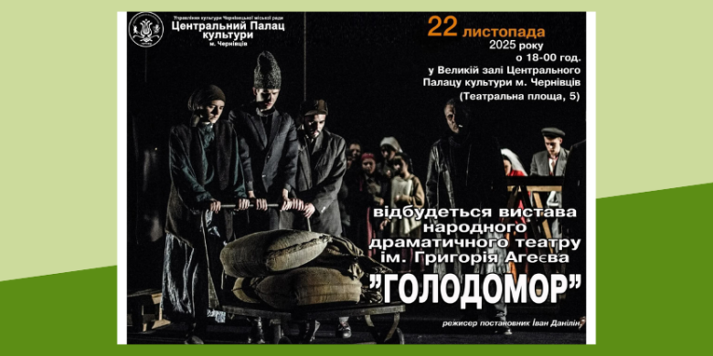 Постановка розповідає про штучний голод в Україні у 1932-1933 роках. Виставу представить Народний драматичний театр імені Григорія Агєєва. Постановка відбудеться у залі Центрального палацу культури. Про це повідомляють у Чернівецькій міській раді.  Показ розпочнеться о 18:00. Режисером вистави виступив Іван Данілін. Постановка створена на основі твору Наталії Ворожбит "Зерносховище". У виставі йдеться про злочинну політику керівництва ВКП та радянського ур...