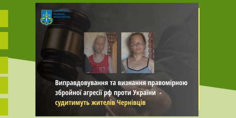 Чернівецька обласна прокуратура скерувала обвинувальний акт до суду щодо двох жителів міста за виправдовування збройної агресії російської федерації проти України, повідомляє відомство. Справу відкрили за першою частиною статті 436-2 Кримінального кодексу України. Про це повідомляють у відомстві. Під час користування онлайн-сервісом Чатрулетка підозрювані вступили у розмову з особою, яка представилась військовослужбовцем збройних сил російської федерації....