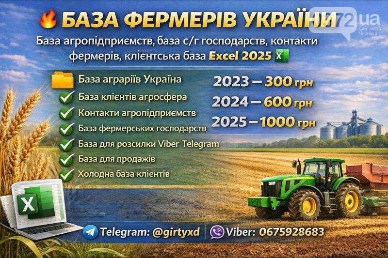 Контакти фермерів, база для розсилки Telegram/Viber, база для продажів, база клієнтів агросфера, холодна база клієнтів, база фермерів для маркетингу.